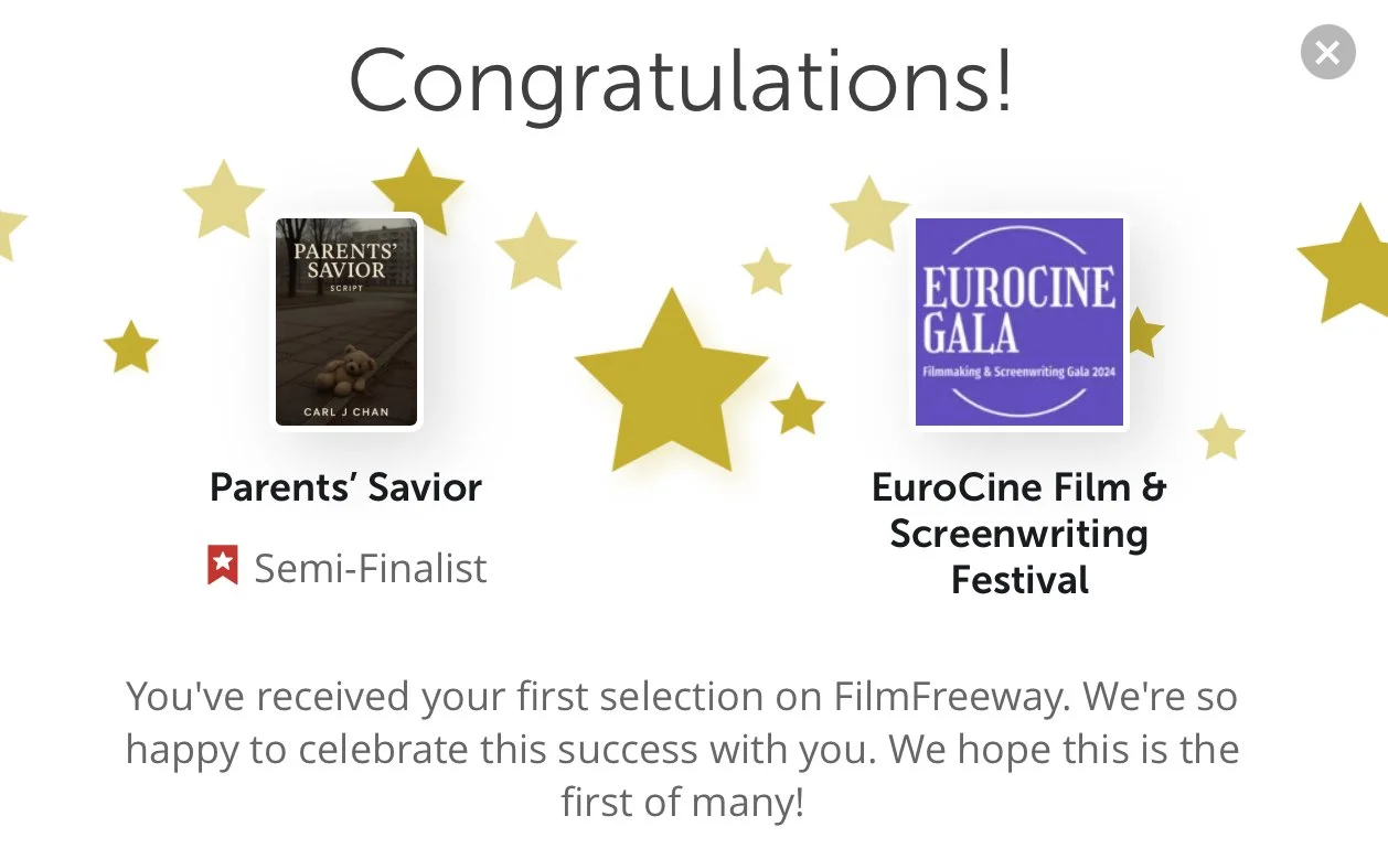 Parents’ Savior (Script) by Carl J Chan – Nominee, EuroCine Film & Screenwriting Festival